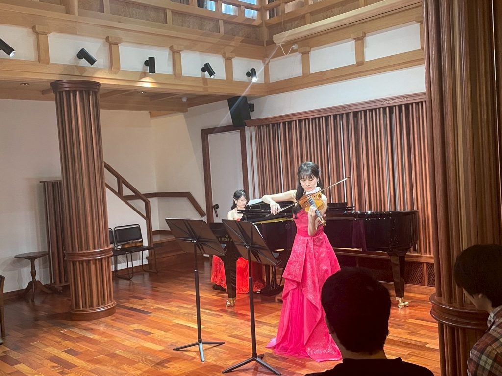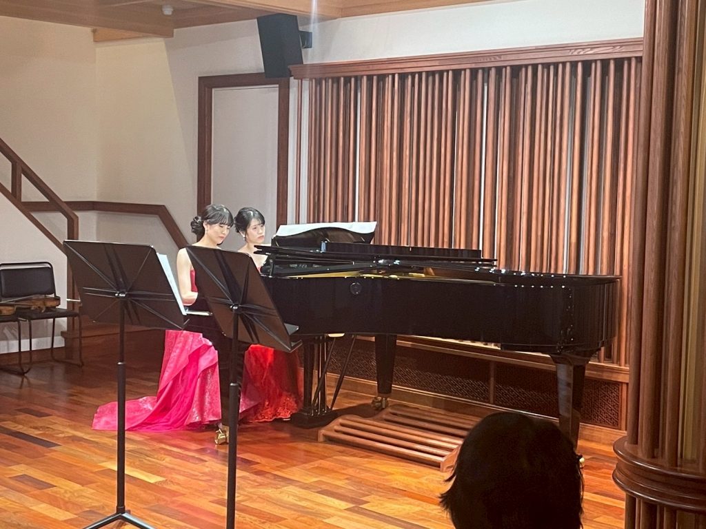 曲中なんとヴァイオリンだけでなく、ピアノ伴奏、そしてピアノ連弾をされる場面もあり、お客様はさぞ驚かれたのではないでしょうか。心のこもった美しいピアノの音色も本当に素敵でした。