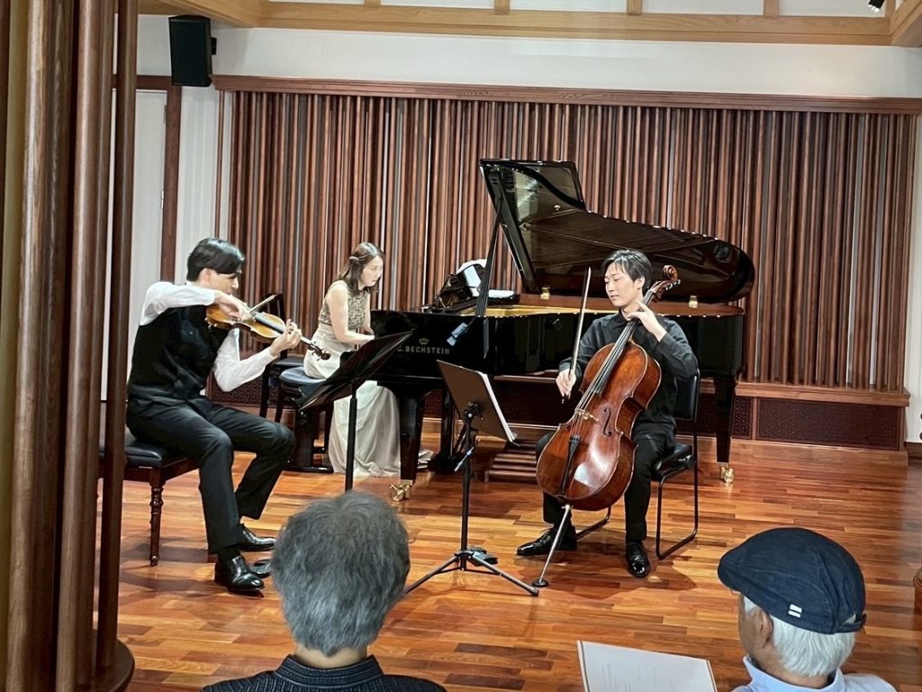 休憩後の後半はドビュッシーのピアノトリオ。若手の実力ある素晴らしいお二人と共演させていただき、またこのピアノトリオはドビュッシーが若い頃の作品ということで、私もなんだかとてもフレッシュな気持ちで作品と向き合うことができました。