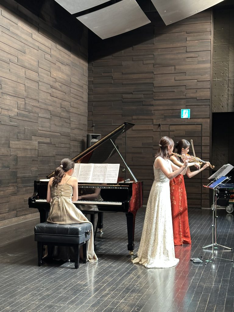出演は銘楽堂支援アーティストの齋藤華香さん(Fl)、弓場友美子さん(Vn)、都筑小百合さん(Pf)。